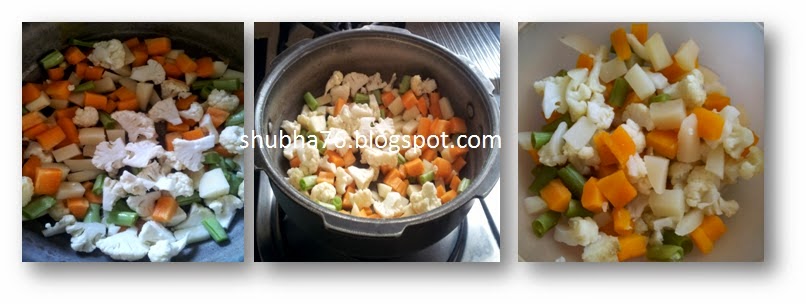 vegetables except peas and cook in cooker (only one whistle)